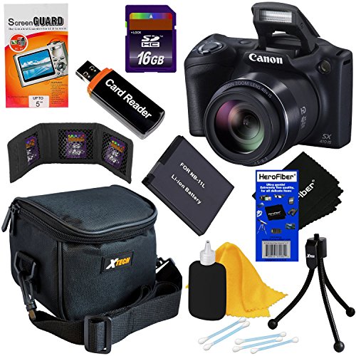 Canon Powershot SX410 IS 20 MP Digital Camera with 40x Optical Zoom and 720p HD Video (Black) + NB-11L Battery + 8pc Bundle 16GB Accessory Kit w/ HeroFiber Ultra Gentle Cleaning Cloth