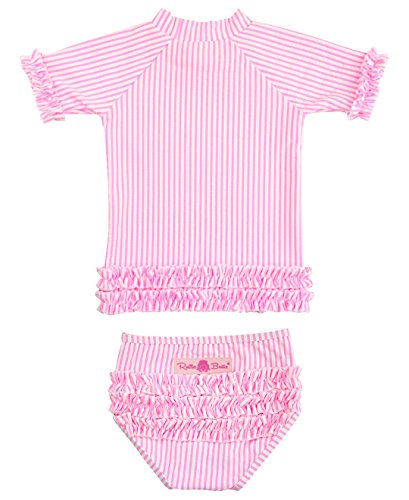 RuffleButts Little Girls Hot Pink Seersucker UPF 50+ Ruffled Rash Guard Bikini Swimsuit Set