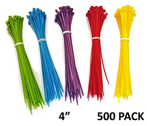 Electriduct Nylon Cable Ties - 4" Self-Locking Zip Ties Multi Color: (Blue, Red, Green, Yellow, Purple) - 500 Pieces
