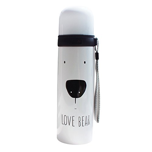 Thermos With Cup For Kids, Stainless Steel Beverage Bottle Keeps Liquids Hot or Cold, Double-walled and Insulated, Vacuum Flask, Leak-Proof, BPA-Free, 16 Ounces (500ml) (White Bear)
