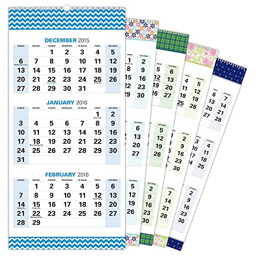 2016 Wall Calendar ASSORTED DESIGNS, 3 month view, 13" x 27”, by Global Printing & Packaging