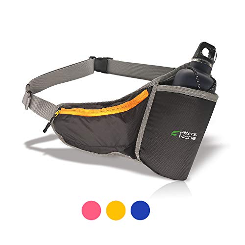 fitter's niche Hydration Fanny Pack, Water Bottle Holster Holder Running Belt for Men Women, fits iPhone Xs 8 Samsung, Reflective Water Resistant Waist Bag, Ideal for Hiking Travel Trips Outdoors