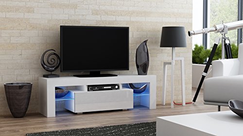 TV Stand MILANO 160 White line / Modern LED TV Cabinet / Living Room Furniture / Tv Console fit for up to 70" flat TV screens / Capacity Tv Console for Modern Living Room (White & White)