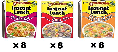 Maruchan Instant Lunch Variety Pack with Chicken, Beef, Shrimp, 2.25 Oz (Pack of 24)