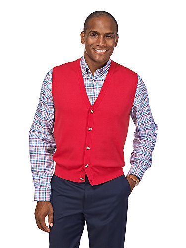 Paul Fredrick Men's Pima Cotton Button Front Cardigan Sweater Vest Red XL Tall