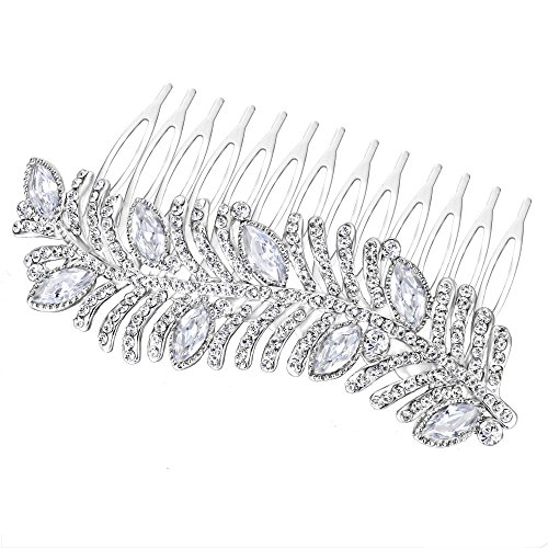 EVER FAITH Silver-Tone Austrian Crystal Cubic Zirconia Feather Marquise Shape Leaves Hair Comb Clear