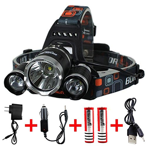 Keku LED High Power Headlamp Rechargeable Waterproof Head Flashlight Lamp with 3 Xm-l T6 4 Modes