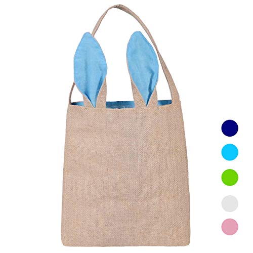 Easter Bunny Bag Dual Layer Rabbit Ears Design Jute Cloth Bag for Party (Blue)
