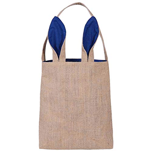 Easter Bunny Bag Dual Layer Rabbit Ears Design Jute Cloth Bag for Party (Navy Blue)