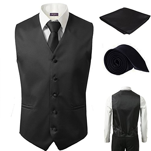 Black 3 Pcs Vest + Tie + Hankie Men's Fashion Formal Dress Suit Slim Tuxedo Waistcoat Coat