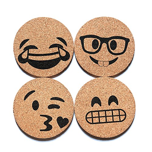Corkologist Emoji Cork Round Beverage Coasters, Novelty Bar Drink Coaster, Set of 4 (Style 2)