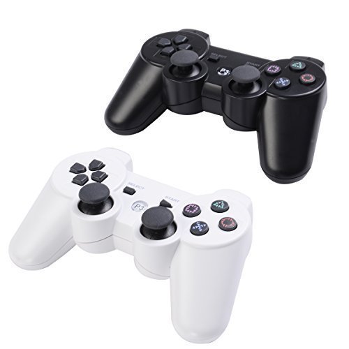 Safstar 2 Packs Bluetooth Wireless Remote Game Gaming Controller Gamepad Consoles Joypad Joystick for Sony Playstation III PS3 ( Black+White )
