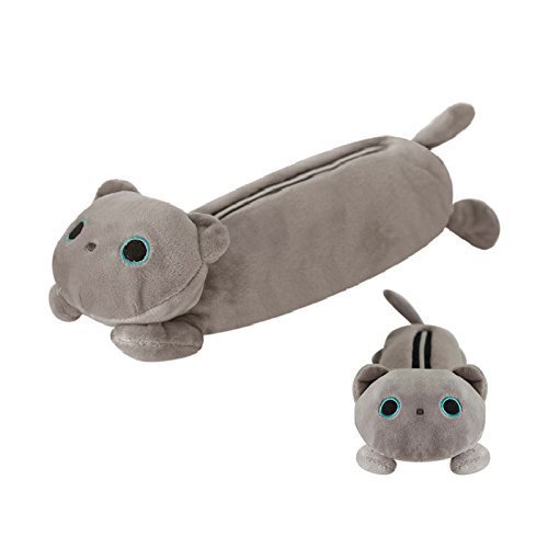 Gloveleya Cartoon Cat School Pencil Bag Pen Case Comestic Makeup Pouch 10'' (Gray)