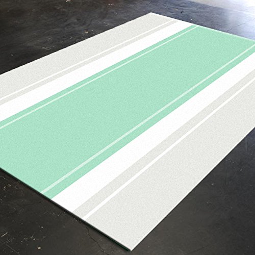 HawkerPeddler Nursery Decor Bedside Mint Grey Stripe Kids Bedroom Rubber 5ft x 4ft Thin Rug