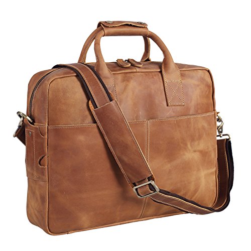 Texbo Genuine Full Grain Leather Men's 16 Inch Laptop Briefcase Messenger Bag Tote with YKK Metal Zipper