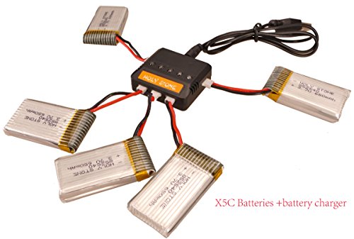 DEERC Five 3.7V 650mAh Rechargerable 25C LiPo Batteries To Increase Flight Time(45 Min) For RC X5C M68 Cx-30w Quadcopter, With 5 In 1 Max 2.5A Current Input Fast Multi Quadcopter Battery Charger