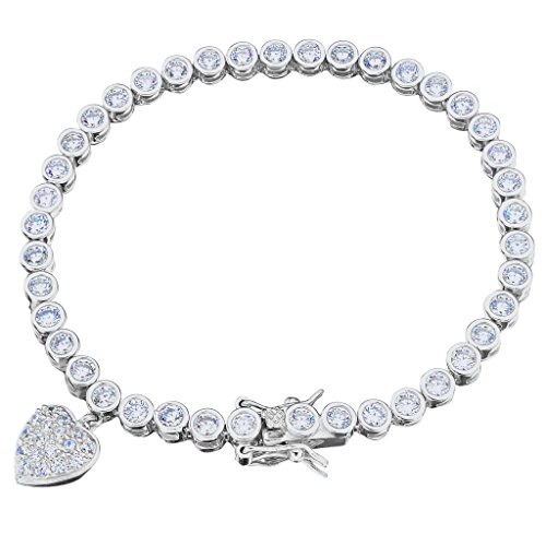 EVER FAITH 925 Sterling Silver CZ Round Pendant Heart Tennis Bracelet Chain Clear