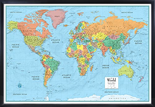 32x50 RMC World Signature Push-Pin Travel Wall Map Foam Board Mounted or Framed (Black Framed)