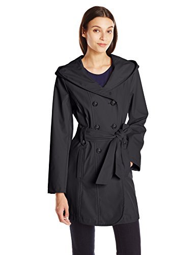 Larry Levine Women's Double Breasted Hooded Trench Coat, Black, X-Small