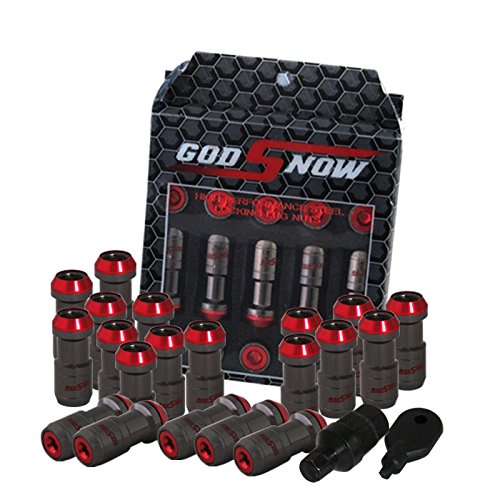 GodSnow - Aluminum 20x M12x1.5 Thread Pitch Extended Open Closed Tuner Wheel Lug Nuts Kit Gun Metal Red