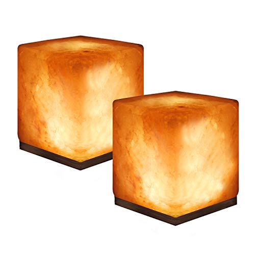 Crystal Allies: Natural Himalayan Pyramid Salt Lamp on Wood Base with Cord, Light Bulb & Authentic Crystal Allies Info Card - Pack of 2