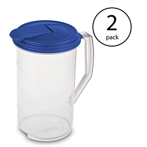 Sterilite 2 x 2 quart Round Pitcher, Blue Sky Lid with Clear base, Pack of 2