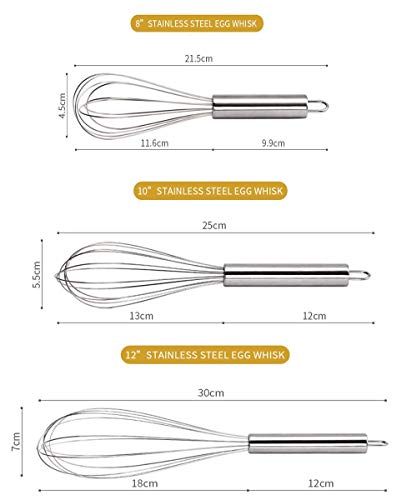 Wire Whisks - Extra Strength Stainless Steel Whisk Set of 3 – Quality Kitchen Utensils - Hand Mixers for Blending Stirring Whipping Chocolate, Dough, Flour, Milk and Eggs - Small, Medium Large