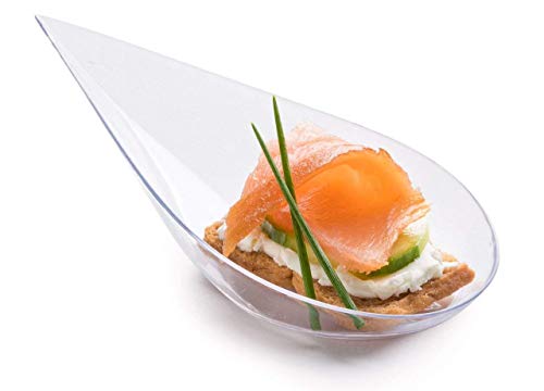 Zappy - 100 Clear 4 Inches Plastic Tear Drop Appetizer Spoon Clear Plastic Spoon Tasting Spoons Soup Spoons/Asian Spoon Dessert Dish Bowls Teardrop Plates Spoons