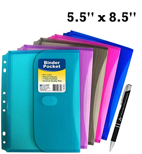 C-line Mini 5.5 x 8.5 Poly Binder Pocket w/ Hook Loop Closure, with Custom AOP Pen