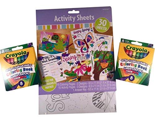 Springtime Fun Classroom Activity Bundle: 3 Items: 1 Package of 15 Coloring Pages & 15 Activity Pages and 2 Boxes of Crayola 8 Count Washable Large Crayons