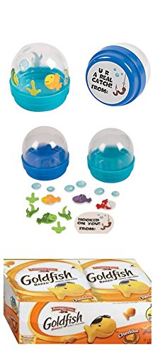 U R a Real Catch Fish Themed Valentine Favor Cards Bundle for 12 Includes:make Your Own Fish Tank Bubble Favor Containers, Individually Wrapped Gold Fish Cracker Packs