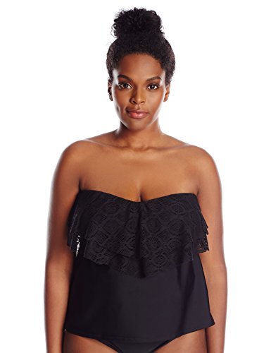 Beach Couture Women's Plus-Size Crochet Bandeau Tankini, Black, 1X
