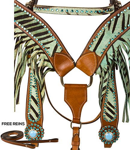 TURQUOISE FRINGE WESTERN SHOW HORSE TACK SET CRYSTAL LEATHER BARREL RACING SILVER BRIDLE