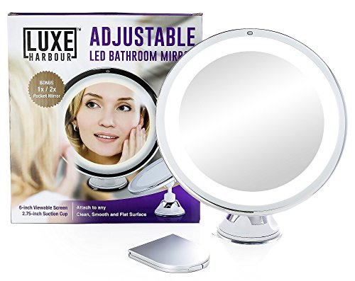Luxe Harbour Lighted Makeup Mirror - 7x Magnification & Adjustable Locking Suction Cup - Travel Vanity, Modern Tap Light Magnifying Bathroom, Bonus Compact Mirror - Top Gifts for Women