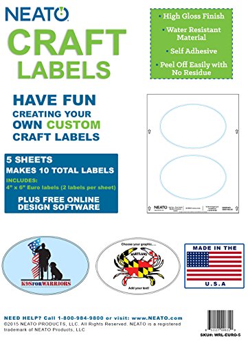 Neato Craft Labels – 4" x 6" Euro - Glossy, Vinyl - 5 Sheets - 10 Labels