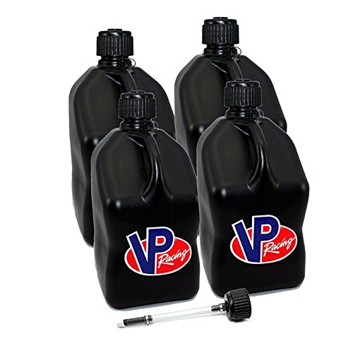 4 Pack VP 5 Gallon Square Black Racing Utility Jugs with Extra Cap & Deluxe Filler Hose