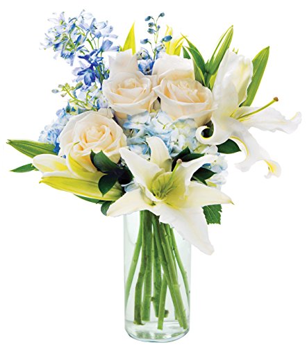 Bouquet of Silk White Roses with Cashmere Hydrangea and Lilies with Vase