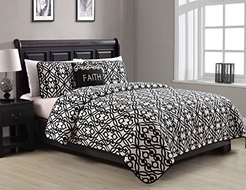 S.L. Home Fashions 4 Piece King Faith Black/White Quilt Set