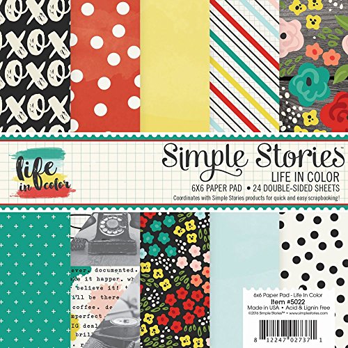 Simple Stories 5022 Life in Color Double-Sided Paper Pad (24 Pack), 6" by 6", Multicolor