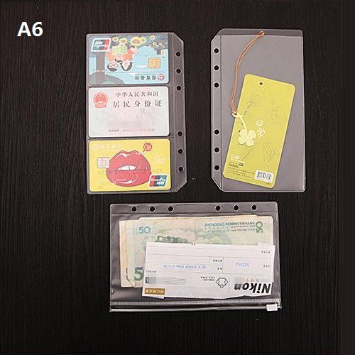 Chris-Wang A6 Size EVA Travel Ring Binder Planner Notebook Refills Filler Organizer Envelope Photo Sleeves - Zipper Case, Bill Pouch, 3 Pockets Name Card Bag(6 Holes), Pack of 3