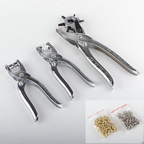 Wennow 3pc Leather Belt Hole Punch + Eyelet Plier + Snap Button Grommet Setter Tool Kit