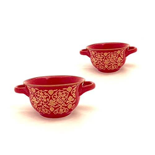 Crock Pot Dinnerware Ceramic Soup Bowls (Red and Taupe Bohemian Print)