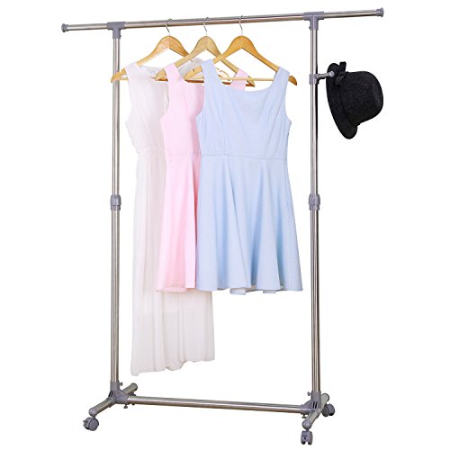 Ollieroo Stainless Steel Telescopic Rolling Garment Rack Clothing Rack (Single Rail)