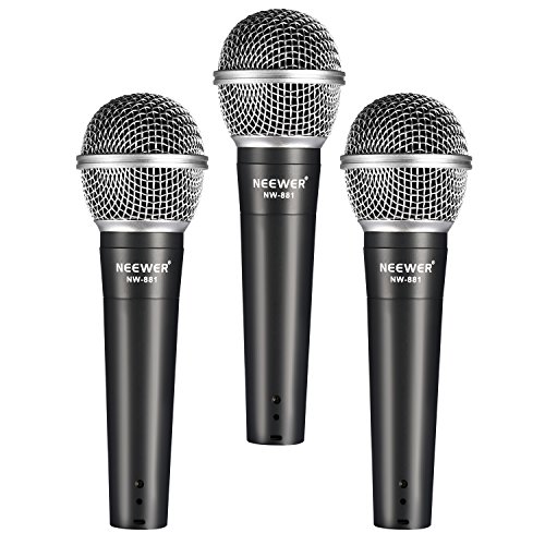 Neewer Dynamic Vocal Recording Microphone Set: (3)NW-881 Vocal / Recording Microphones + (3)Microphone Clips + (3)5/8-Inch Male to 3/8-Inch Female Mic Screw Adapters + (1)Foamed Carrying Case