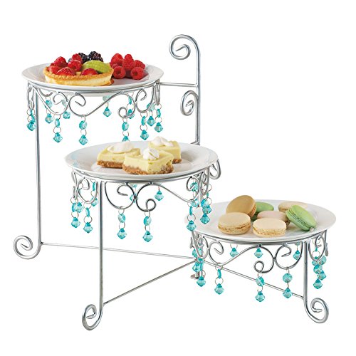 Beaded 3 Tier Silvertone Swivel Server - Blue