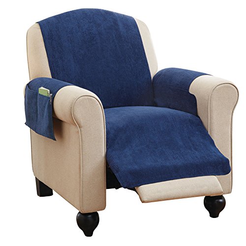Faux Chenille Recliner Furniture Protector Cover with Pockets, Blue