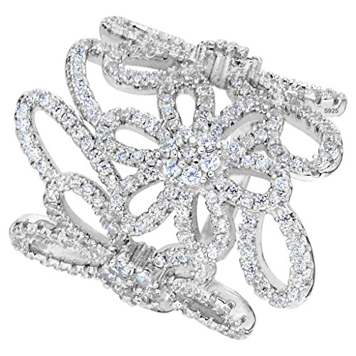EVER FAITH Sterling Silver 925 CZ Art Deco Flower Finger Knuckle Cocktail Ring Clear