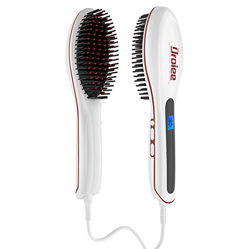 Droiee Hair Straightener Brush - Best Electric Ceramic Heating Straightening Brush for Women - Anti Scald, Static, Detangling and Silky Straight [White with Red]