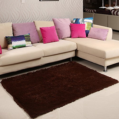 Wolala Home Super Soft Plush Shaggy Rectangle Brown Carpet 4 ft by 6'6 ft Non-Slip Durable Solid Floor Rug for Livingroom,Bedroom,Children's Room