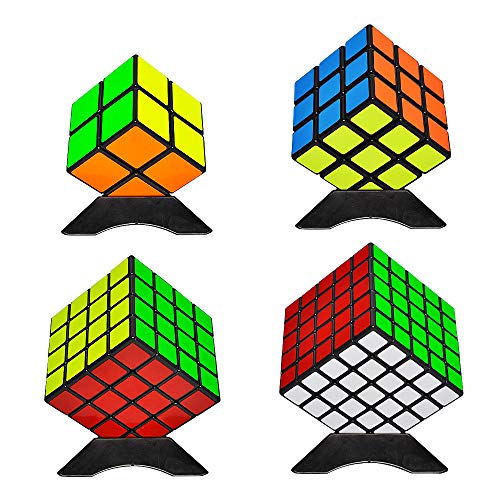 Mysterystone Magic Speed Cube Puzzle Bundle Pack(2X2X2, 3x3x3, 4x4x4, 5x5x5) with Extra 4Xdisplay Stand & 4Xportable Bag